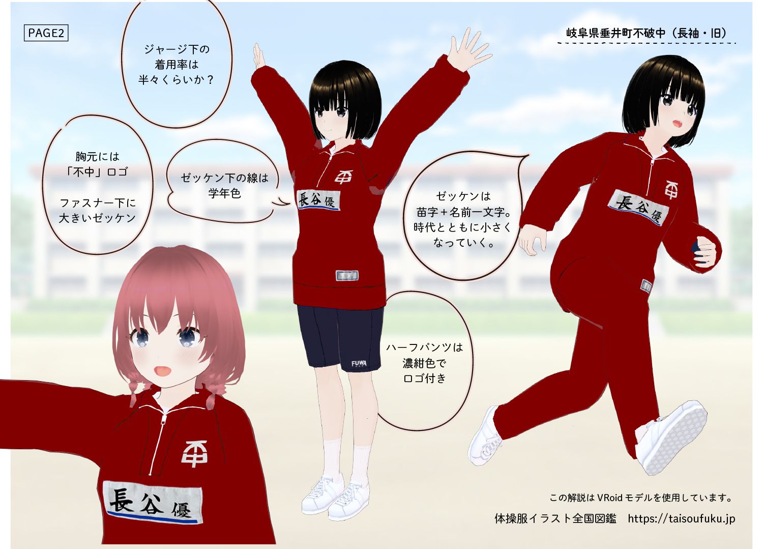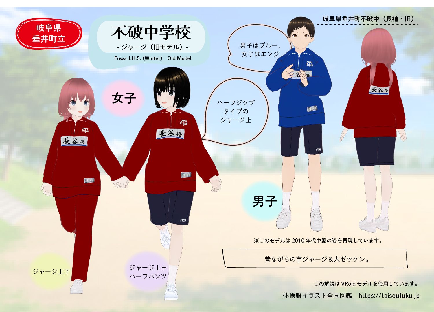 【3Dモデル】垂井町立不破中学校 ジャージ上下+ハーフパンツ